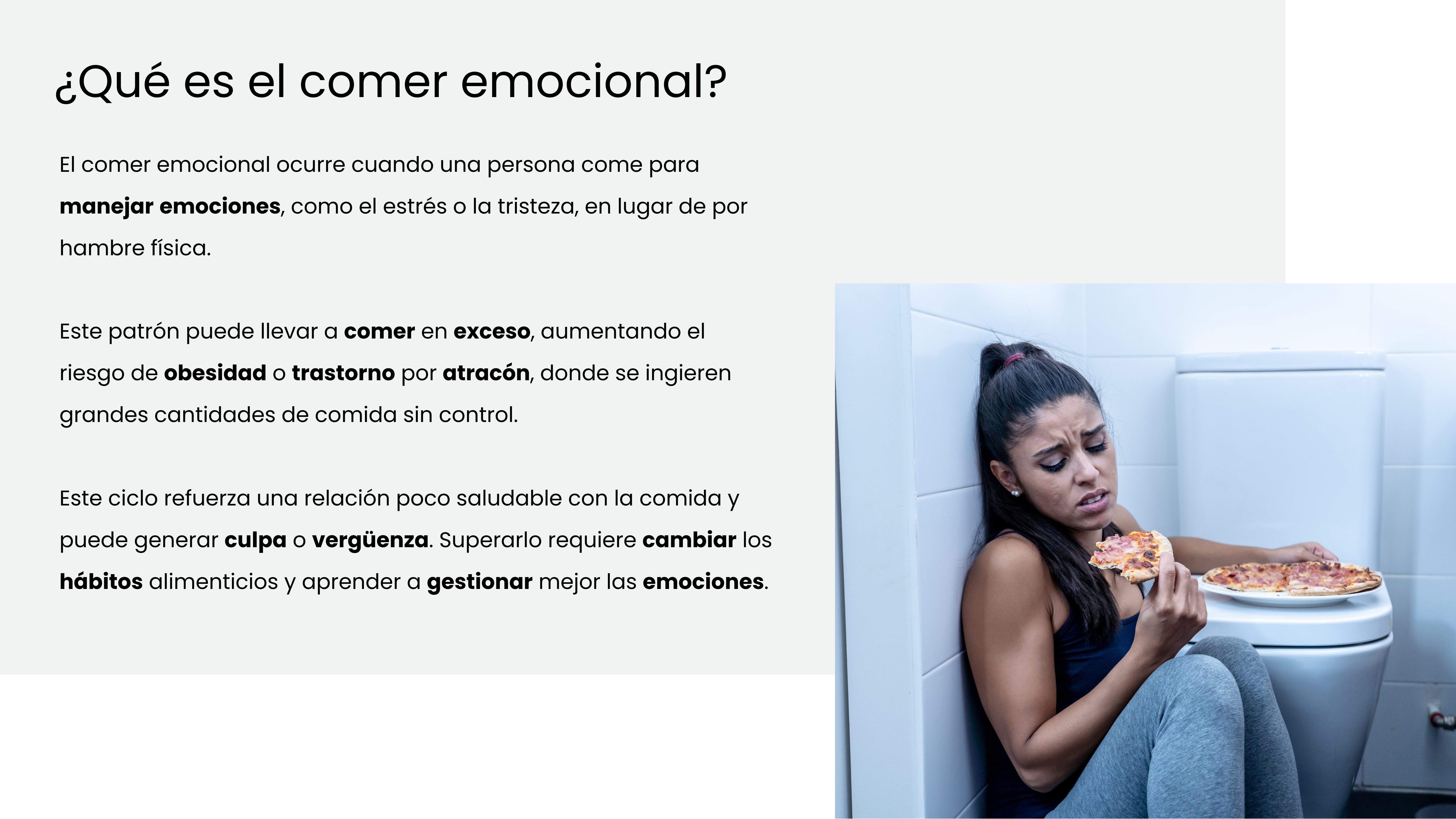 Está dirigido a personas que sienten que han perdido el control sobre su ingesta alimentaria, que experimentan ansiedad por la comida o que gestionan sus emociones a través de la comida, lo que puede llevar a episodios de atracones.